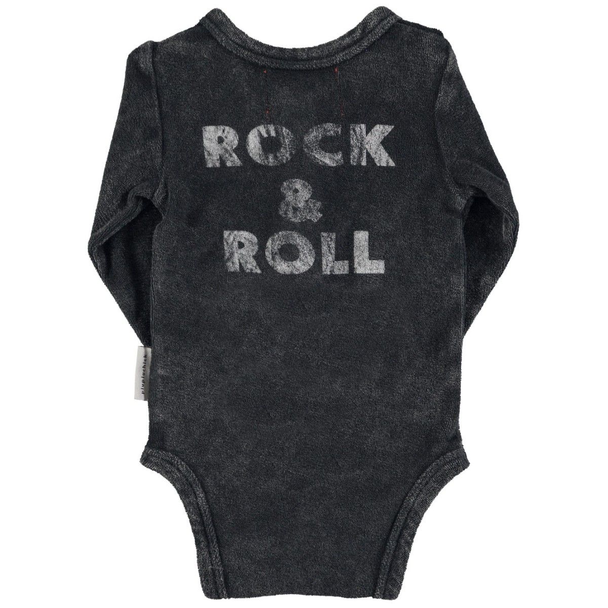 Long sleeve bodysuit in terry cotton. Faded effect. Button fastening on the chest and snap-button fastening at the bottom. Detailed with small logo star on chest and white "rock & roll" print on the back. 100% Organic Cotton